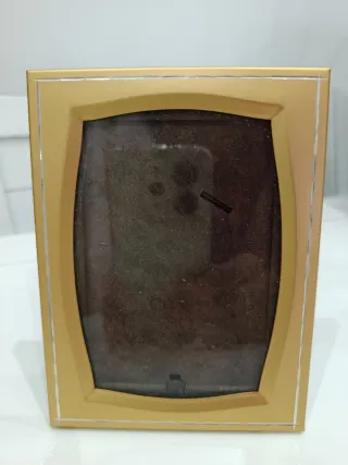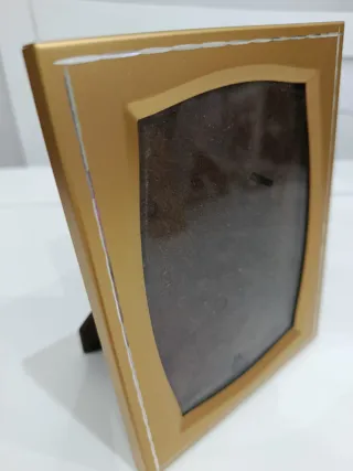 Elegante portafotos en color dorado. Perfecto para colocar tus recuerdos más preciados. Precioso y en perfecto estado - Medidas: 12 x 8 cm. - Acabado metálico.