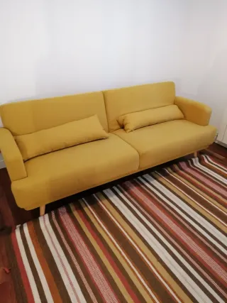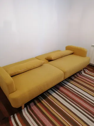 Sofá cama amarillo de tela