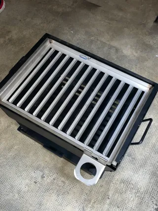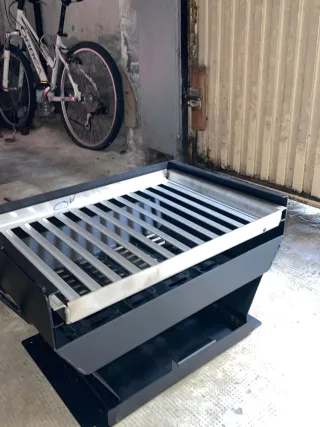 Parrilla acero inoxidable un diseño moderno y funcional. - Estructura principal en color negro. - Rejilla superior en acabado plateado.