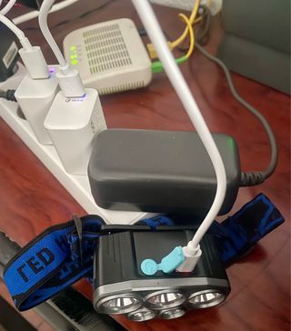 Linterna frontal con diseño moderno y práctico, ideal para actividades al aire libre o para tener a mano en casa. Se carga fácilmente mediante USB. - Correa ajustable para mayor comodidad. - Múltiples luces LED para una iluminación potente. - Puerto de carga USB integrado.