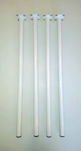 Juego de cuatro patas para mesa con acabado redondo y en color blanco. Perfectas para un escritorio o mesilla. - Altura de 75 cm. - Diámetro 30 mm. - Base cuadrada para fijación 60x60 mm. - Tapones protectores en la base. #pata #mesa #escritorio #tubo #apoyo #mesilla #pies #elegante #decoración