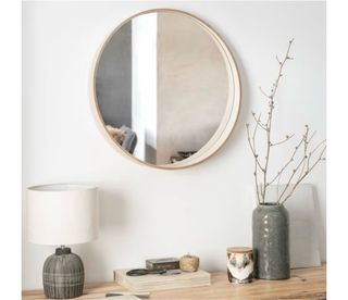 Elegante espejo redondo con un marco de madera. - Diseño circular. - Marco de madera natural. -lo vendo por que quiero uno mas grande. Me costó 40€ -55cm diametro