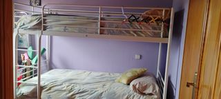 Cama individual con cama extraíble y tres cajones de almacenamiento. - Cama nido. - Tres cajones integrados. La cama de arriba, el colchón es de 1,90x90, y el de abajo 1,80x90 tres cajones abajo, solo con el colchón de abajo