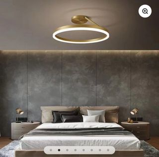 Lámpara de techo con un diseño moderno y elegante. - Acabado en dorado. - Estructura de metal. - Iluminación LED integrada. Material: Anillo metálico con acabado mate Fuente de luz: LED integrado Potencia: 32W Dimensiones: Anchura 50 cm x Altura 18 cm Color de luz: Blanco cálido. Instalación: Fácil montaje con accesorios incluidos Contenido del paquete: 1 x Lámpara de Techo LED LuzÁrtica 1 x Kit completo de instalación 1 x Manual de usuario