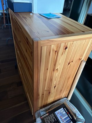 Mueble de almacenaje con un diseño sencillo y funcional. - Estructura de madera. - Dos puertas frontales. - Pequeñas manchas (tal y como se muestra en la foto) que se pueden lijar y pintar. No se realizan envíos