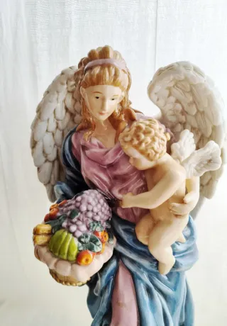 Figura de porcelana muy detallada y elegante, con acabados delicados y gran presencia. Representa un ángel con niño, ideal para decoración clásica, religiosa o como regalo especial. ✨ Marca PB ✨ Estado impecable, sin roturas ni desperfectos ✨ Pieza grande y muy decorativa Perfecta para salón, recibidor o como regalo cuidado y especial. ✈️ Solo envios