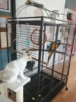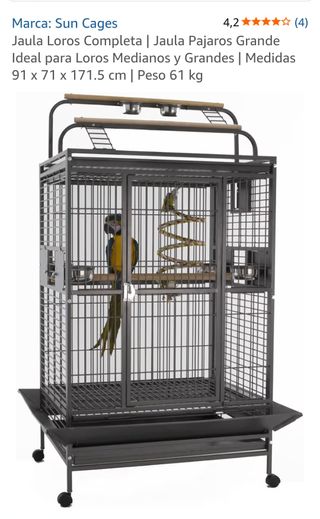 Jaula espaciosa para loros medianos y grandes. - Medidas: 91 x 71 x 171.5 cm. - Peso: 61 kg. - Marca: Sun Cages.