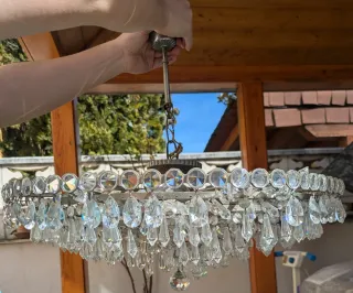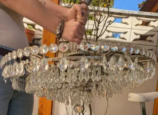 Elegante lámpara de techo con un diseño clásico y brillante. Sus cristales aportan un toque de luz y sofisticación a cualquier espacio. - Diámetro aproximado de 60 cm. - Diseñada para 8 bombillas (no incluidas). - Estructura en tono plateado.