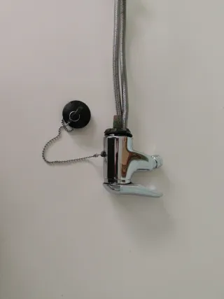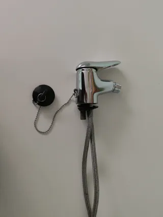 Grifo para bidet de la marca Roca. - Fabricado en metal y plástico. - Incluye tapón de goma con cadena. - Incluye latiguillos