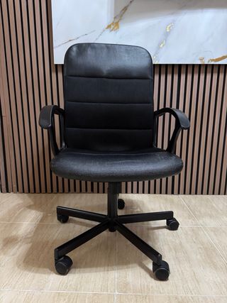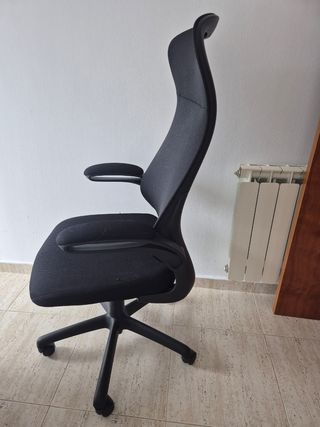 Silla de escritorio cómoda y ergonómica, ideal para largas jornadas de trabajo. Totalmente funcional. Es cierto que tiene algo de desgaste (nada alarmante ya que es normal con el uso) y de ahí el precio al cuál la he puesto, pero la silla sigue cumpliendo su función perfectamente. Podéis venir a verla y probarla sin compromiso. - Diseño moderno. - Respaldo con soporte lumbar y arco gradual de reclinado. - Palanca de ascenso y descenso funcional.