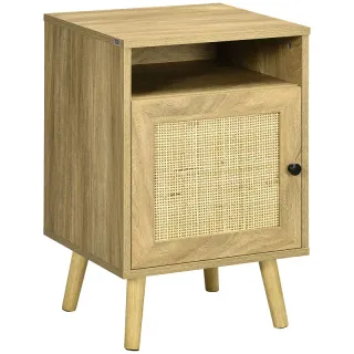 Horario: Lun-Vier 10h-14h 15h-19h JUEVES CERRADO Destaca por su diseño bohemio y estética natural - Gracias a su bonito diseño, ofrece una gran versatilidad, pudiéndose usar como mesita de noche, pero también como mesa auxiliar junto al sofá o pequeño organizador para habitaciones pequeñas - El armario y el estante abierto ofrecen un amplio espacio para guardar libros, tener encima una lámpara, y demás artículos que sean esenciales para ti junto a la cama - Incluye antivuelco para mayor estabilidad y seguridad - La superficie es fácil de limpiar con un paño húmedo Medidas totales: 39x35x60 cm (LxANxAL) Carga máxima: 30 kg 831-599V01