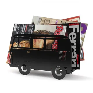 Horario: Lun-Vier 10h-14h 15h-19h JUEVES CERRADO Original revistero con forma de furgoneta en color negro. Perfecto para organizar tus revistas y publicaciones. - Diseño único en forma de furgoneta. - Color negro.