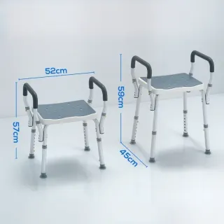 Horario: Lun-Vier 10h-14h 15h-19h JUEVES CERRADO - Este taburete para baño ajustable de 57 a 69 cm, se adapta a diferentes alturas, ofreciendo comodidad y seguridad durante la ducha - Proporciona apoyo y estabilidad, ideal para personas con movilidad reducida o mayores - Esta silla de ducha para mayores cuenta con un asiento de EVA y reposabrazos acolchados para máxima comodidad - Este taburete de ducha está fabricado en HDPE y su estructura de aluminio - Carga máxima: 150 kg - Referencia: 712-070V00LB