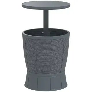 Horario: Lun-Vier 10h-14h 15h-19h JUEVES CERRADO Esta mesa con cubitera tiene un diseño 3 en 1 y puede usarse como nevera, mesa auxiliar o mesa de bar - Cuenta con altura ajustable entre 58 y 84 cm, ideal para distintas ocasiones - Incorpora un mecanismo de bloqueo para mantener la altura elegida de forma estable y segura - Su capacidad de 41 L permite mantener las bebidas frías hasta 12 horas - Esta mesa de jardín incluye un sistema de drenaje para facilitar la limpieza Medidas totales: Ø49x58-84 cm (DxAL) Carga máxima: 50 kg 84G-792V00GY