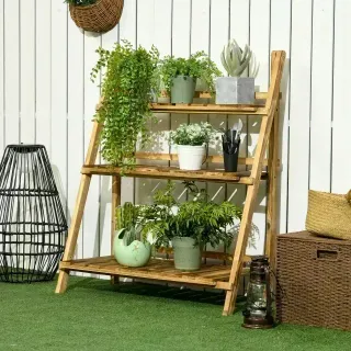 Horario: Lun-Vier 10h-14h 15h-19h JUEVES CERRADO Soporte para plantas con diseño de 3 niveles El diseño en forma de escalera ofrece suficiente espacio para que tus plantas crezcan y reciban la luz solar adecuadamente Diseño vertical, para mayor ahorro de espacio y practicidad Este soporte para macetas puede plegar cuando no se usa para poder mover y guardar con mayor facilidad Estantes de listones para un drenaje rápido y que no se dañe la madera por acumulación de agua Fabricado en madera maciza de abeto resistente e ideal para uso prolongado Carga máxima: 50 kg (total) - Referencia: 845-112