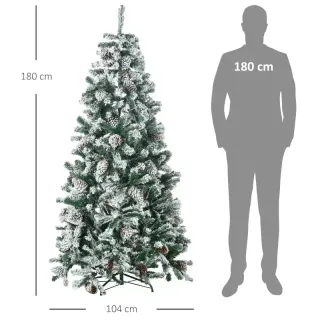 Horario: Lun-Vier 10h-14h 15h-19h JUEVES CERRADO Árbol de Navidad grande de 180 cm, con un aspecto natural y realista - Tiene un aspecto nevado y 57 piñas para crear un ambiente navideño perfecto - Con 695 ramas fáciles de configurar - Fabricado en secciones para facilitar el montaje, desmontaje y almacenaje - Las ramas son ignífugas para mayor seguridad - Base de acero resistente ideal para uso prolongado - Solo para uso en interiores, no apto para uso en exteriores Medidas totales: Ø104x180 cm (DxAL) 830-751V01GN