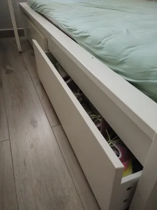 Cama individual blanca con cajones