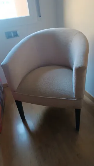 Butaca beige con reposabrazos y patas