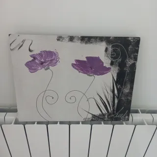 Cuadro flores moradas y grises