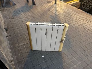 Radiador de pared con un diseño moderno y funcional. Su acabado en blanco y amarillo le da un toque distintivo. - Color: Blanco y amarillo. - Tipo: Radiador de pared. - Tiene un agujero por q se me callo pero funciona bien