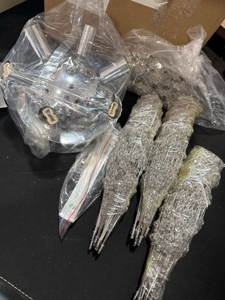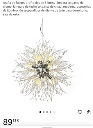 Lámpara colgante de techo con un diseño moderno inspirado en fuegos artificiales. Suspendida con un cable, esta pieza central añade un toque de elegancia. - Estructura de metal con acabado cromado. - Detalles de cristal transparente. - Incorpora 8 puntos de luz.