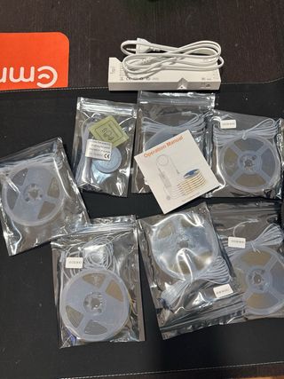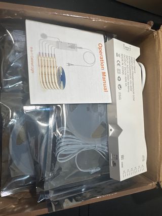 Kit de iluminación LED para gabinetes, fácil de instalar. - Incluye transformador 12V-60W. - Entrada AC110-250V, salida DC12V 60W 5A. - Fabricado en China.