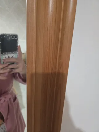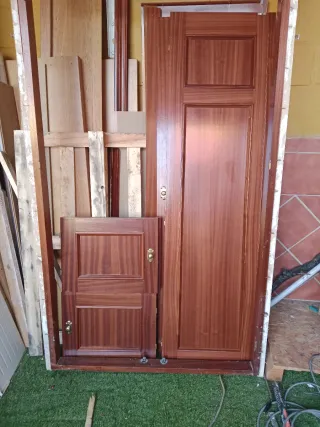 Urge venta!!! Estructura de armario empotrado de madera con unas medidas de 220 cm de alto por 120 cm de ancho. - Diseño de puertas con listones verticales. - Tiradores dorados. - Paneles inferiores lisos. El conjunto lo componen 2 puertas de 50x180 cm + 2 puertas de altillo de 50x40 En perfecto estado Los acabamos de quitar por lo que también podría aprovecharse el panelado y la estructura interior