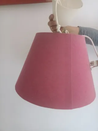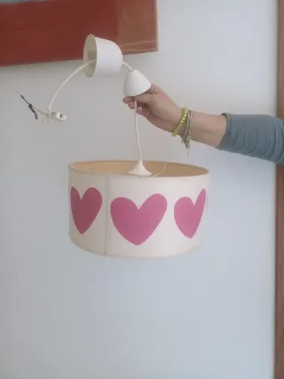 2 Lámparas colgantes con un diseño encantador de corazones rosas sobre fondo blanco y otra con plantalla rosa. Ideal para habitaciones infantiles. - Pantalla de tela. - Estructura de plástico.
