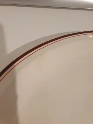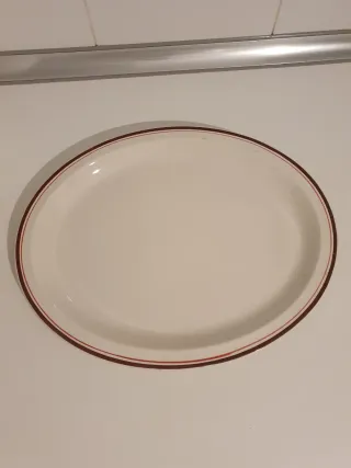 Fuente ovalada de porcelana con un elegante borde. Tiene las marcas que se aprecia en las fotos 2 y 3 - Color blanco con detalles en marrón. - Material de porcelana.