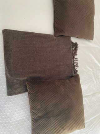 Conjunto de fundas para cojines y una mantita de Zara Home. -fundas 45x45 Son exactamente iguales, si se ven algo diferente es por la luz o cámara. Verde caqui
