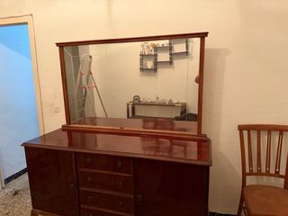 Mueble de estilo antiguo con su espejo a juego. Una pieza clásica para tu hogar. - Acabado en madera oscura. - Espejo con marco a juego. Las medidas no son las reales, si las necesitas, me preguntas y se te miden exactas