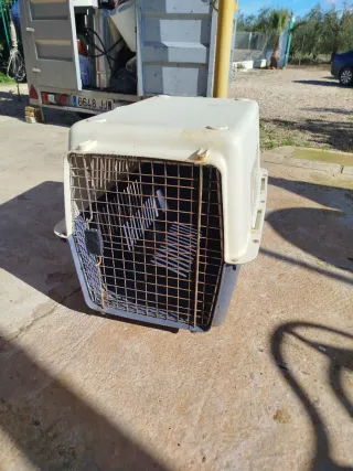 Transportín para perros de tamaño grande. Ideal para viajes o como espacio seguro. - Estructura resistente. - Puerta de rejilla metálica. - Asa superior para facilitar el transporte.