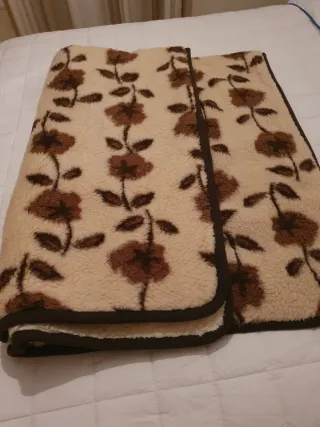 Manta gruesa con un bonito estampado floral. - Diseño de flores marrones sobre fondo beige. - Tacto suave y cálido.