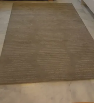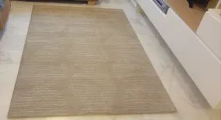 Alfombra de tela en tono beige con un diseño sutil de líneas y rombos. - Está prácticamente nueva,sin uso. - Textura suave al tacto. - Patrón geométrico discreto.