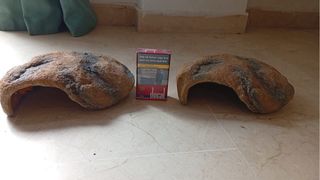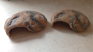 Set de dos cuevas decorativas para terrario. Proporcionan un refugio natural para reptiles. - Diseño imitación roca. - Tonos marrones y grises. .10€ una 15€ las dos.
