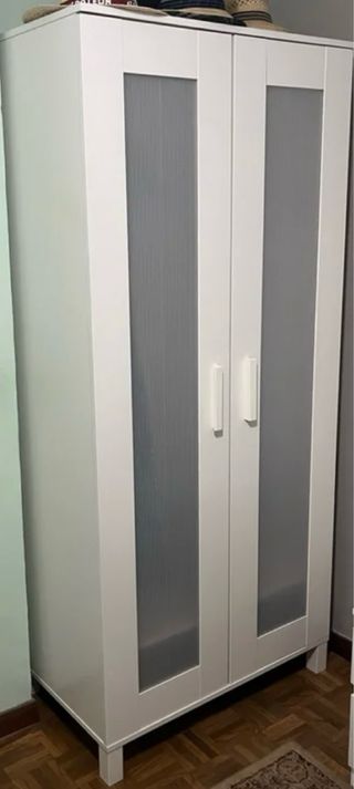 Armario de dos puertas de la marca IKEA, modelo ANEBODA. Su diseño es sencillo y funcional, aportando un toque moderno a cualquier habitación. - Acabado en blanco. - Fabricado en madera. -Tengo 2 armarios 40€ por unidad.