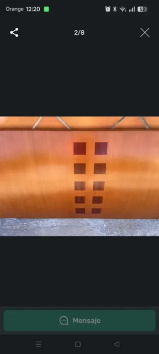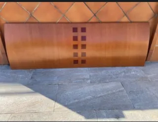 Cabecero de cama de madera para cama de 150 cm. Presenta un diseño moderno con detalles cuadrados en el centro. - Diseño rectangular. - Acabado en tono madera. Para colgar. De segunda mano. No hago envíos. En efectivo.