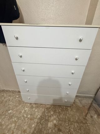 Comoda de seis cajones amplios para almacenar ropa. Mide 45 cm de profundidad 1 metro de ancho 1,30 metro de altura Precio negociable, recogida en mano.