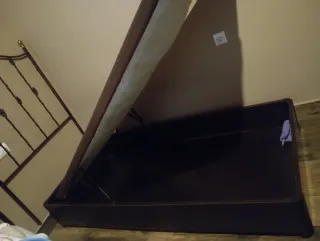 Se vende base tapizada junto con colchón de 1'05 - Base tapizada de color beige. - Colchón incluido.