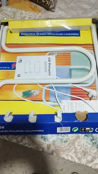 Toallero eléctrico Orthego, modelo TF 1006201. Es manejable, de fácil instalación y duradero.abierto solamente para ver si funcionamiento.. Nuevo - Potencia: 55W. - Dimensiones: 545mm (ancho) x 25mm (profundo). - Incluye tornillería para su montaje.