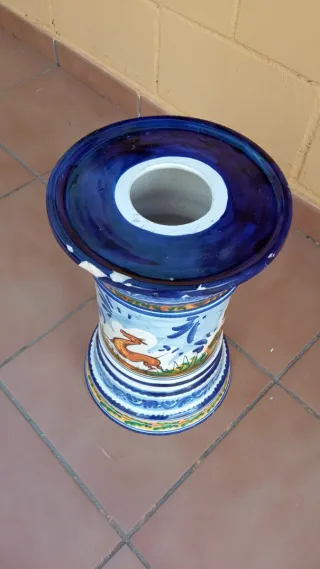 Pie/Columna Cerámica Maceta Azul Multicolor.