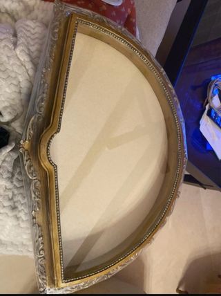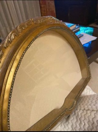 Elegante espejo con un marco detallado y acabado dorado. Aporta un toque clásico a cualquier espacio. Impecable - Marco con diseño tallado. - Acabado en tono dorado.