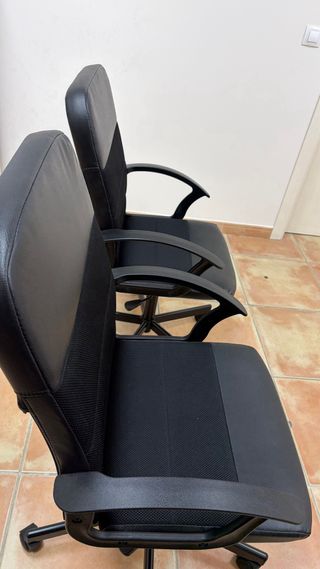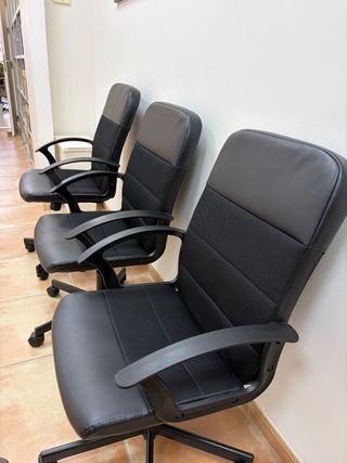 6 sillas practicamente nuevas, con muy poco uso. En tienda valen 59€ Con reposabrazos, ajustables en altura y en tensión de inclinación. Con funcion de seguridad para que la silla no se mueva cuando no se usa. Se venden por 30€ cada unidad