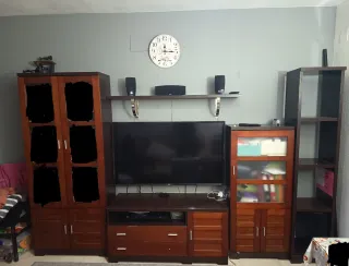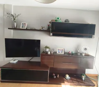 Está prácticamente nuevo, la mesa tiene 3 posiciones. la de la foto, un lateral (mediana) y el otro lateral (casi el doble) Se vende también por separado, mesa y sillas150€ Muebles de salon 100€ - Estructura de madera. - Diseño modular. - Amplio espacio de almacenamiento.