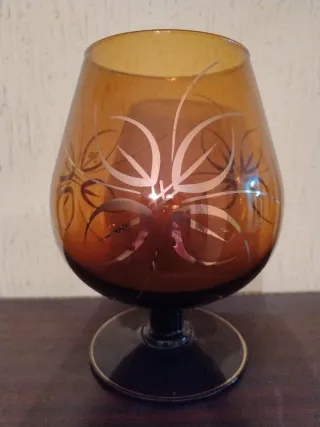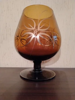Elegante copa de cristal con un bonito diseño grabado. - Color ámbar y detalles en dorado. - Material de cristal de calidad. Mide 23 cm de alto