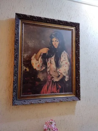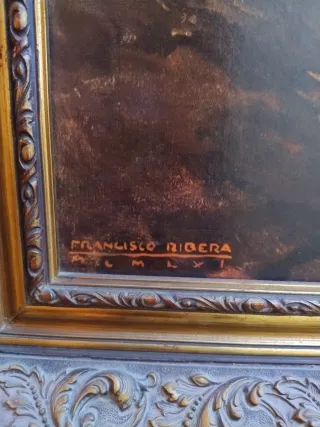 Precioso cuadro del artista Francisco Ribera. - Marco decorativo incluido. - Tonos marrones y multicolor. Reproducción en tablilla impresa y posterior efecto de pintado.