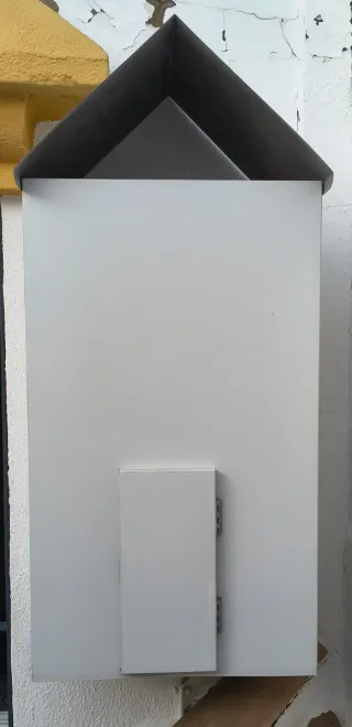 Casetilla para proteger un termo de exterior. Fabricada en chapa galbanizada y con un diseño moderno. - Estructura blanca. - Techo a dos aguas en color blanco - Puerta frontal con bisagras.
