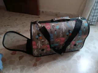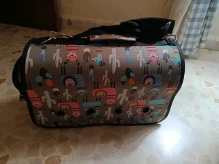 Transportín para mascotas con un divertido estampado de llamas y cactus. Es práctico y fácil de llevar. - Diseño colorido y original. - Múltiples orificios para ventilación.