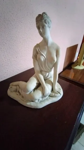 Estatua decorativa de una mujer sentada. Su diseño evoca la belleza clásica.Es de escayola. - Acabado fino y elegante - Color beige.