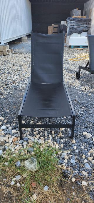 Tumbona reclinable con estructura metálica y asiento de tela. - Diseño moderno y funcional. - Ruedas para facilitar su transporte. - Respaldo ajustable en varias posiciones.